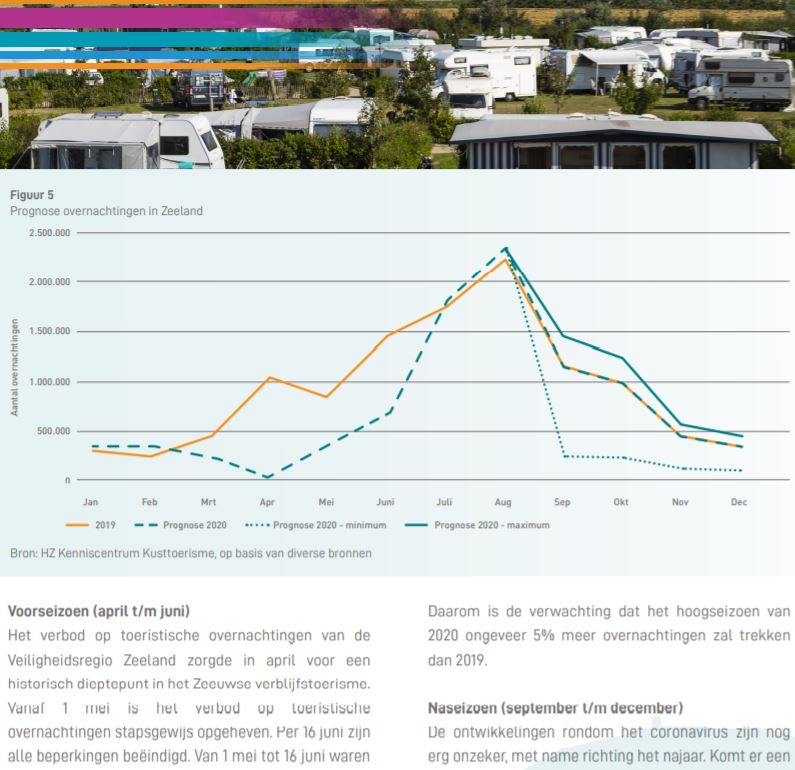 Toerisme is van grote betekenis voor Zeeland en in de afgelopen jaren was sprake van een stijgende lijn in het verblijfstoerisme. 2020 is een jaar anders dan alle andere jaren. De maatregelen tegen het coronavirus hebben een ongekende impact op de vrijetijdseconomie en zullen ook zichtbaar worden in alle toeristische cijfers voor dit jaar. HZ Kenniscentrum Kusttoerisme heeft op basis van alle beschikbare cijfers en informatie een verwachting gemaakt voor de uiteindelijke omvang van het verblijfstoerisme in Zeeland in 2020. In de leaflet vindt u de prognose voor het laag-, voor-, hoog- en naseizoen.