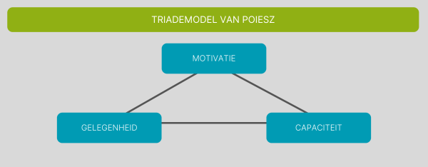 In al onze onderzoeken staat de inwoner centraal, met speciale aandacht voor gedrag. We gebruiken het Triademodel van Theo Poiesz (1996) als inspiratie. Dit model laat zien dat gedragsverandering afhangt van drie factoren: motivatie (willen), capaciteit (kunnen) en gelegenheid (kunnen toepassen). Zo begrijpen we beter hoe inwoners keuzes maken en hoe beleid en initiatieven daarop kunnen aansluiten.